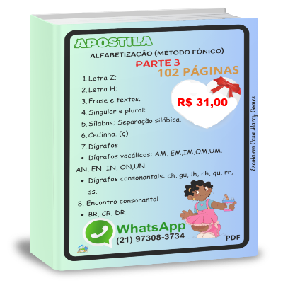 APOSTILA ALFABETIZAÇÃO (MÉTODO FÔNICO) PARTE 3 (102 PÁGINAS). PDF.